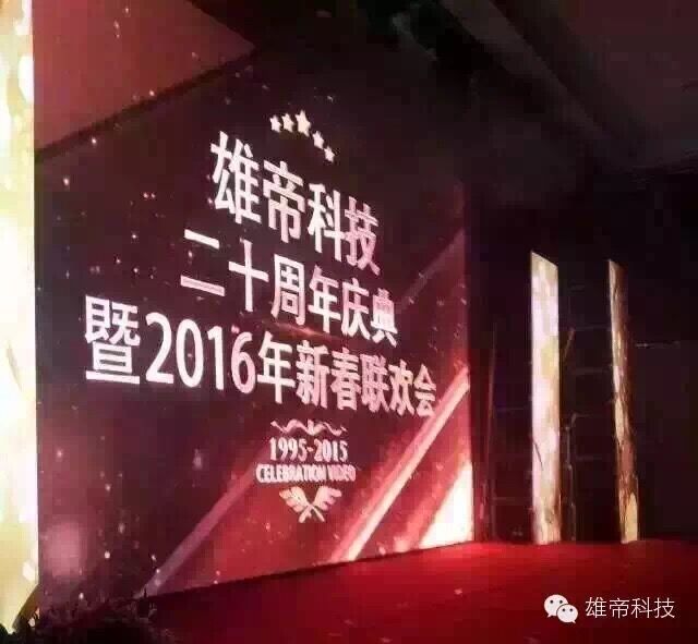 2015年12月28日,深圳市雄帝科技股份有限公司主辦的 “感恩 筑夢 遠航”——雄帝科技二十周年慶典暨2016年新春聯歡會在深圳南山區三諾大廈潮悅世家成功舉辦!