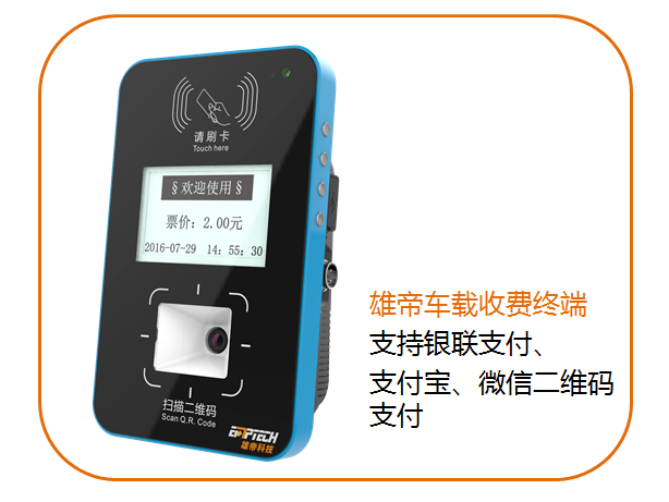 雄帝科技針對客戶需求和行業發展趨勢潛心研發,此次中標的壹萬臺重慶公交車載設備——互聯網車載收費終端,可進行手機二維碼掃碼支付。項目交付后,重慶市將全面支持二維碼支付,方便廣大市民出行。