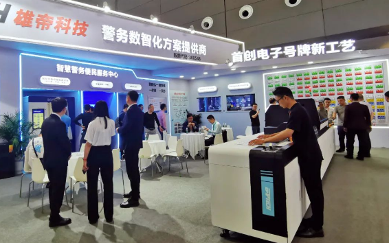 雄帝科技以信息化、智能化手段改革服務模式,大膽創新,打造集全系列智慧車駕管自助服務設備的智慧無人車管所服務大廳:60秒制證的《車證自助一體機》、照相及多警種多業務一機通辦的《警務綜合服務一體機》、一鍵批量高速制取駕駛證的《批量制證機》,提供了“群眾便捷、民警賦能”的智慧警務民生服務,吸引了眾多觀展嘉賓參觀交流。