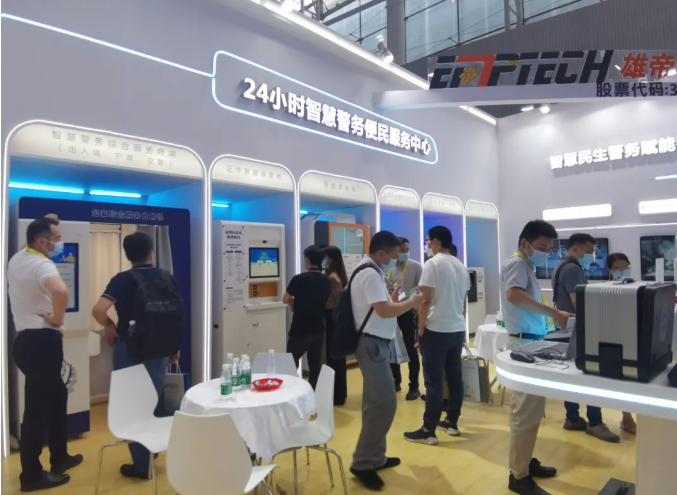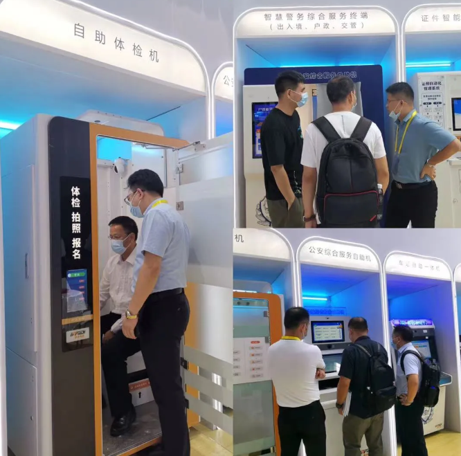 本次盛會雄帝攜全系列智慧警務自助服務終端打造了集出入境、戶政、交管三個警種業(yè)務自助辦理的24小時便民服務中心場景,包括集照相受理簽注取證多業(yè)務一機通辦的《警務綜合服務一體機》、24小時自助體檢的《自助照相體檢機》、60秒完成駕駛證制證的《車證自助一體機》、一鍵批量高速制取駕駛證及行駛證的《批量制證機》等設備,提供了“群眾便捷、民警賦能”的智慧警務民生服務,吸引了眾多觀展嘉賓參觀交流。
