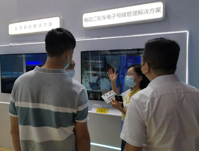 雄帝電動自行車數(shù)字號牌整體解決方案展示區(qū),展示了從電動自行車數(shù)字號牌的生產、質檢、智能郵封發(fā)行到號牌備案管理的全流程智能化管理,數(shù)字號牌中嵌入RFID電子標簽,為電動車違規(guī)執(zhí)法管理提供技術保障,電動自行車備案后可有效降低電動車安全事故,提升交通安全環(huán)境,為市民出行保駕護航。
