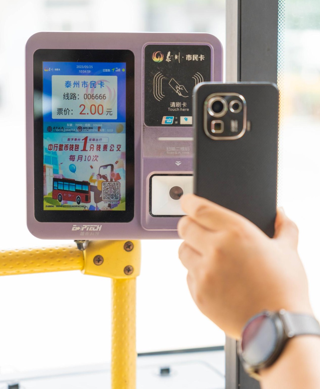 近日,雄帝科技配合泰州市民卡公司,在城區9路公交高效完成數字人民幣軟硬錢包應用上線,此項目成為江蘇全省首個可直接使用數字人民幣軟硬錢包支付的“智慧公交”新場景。