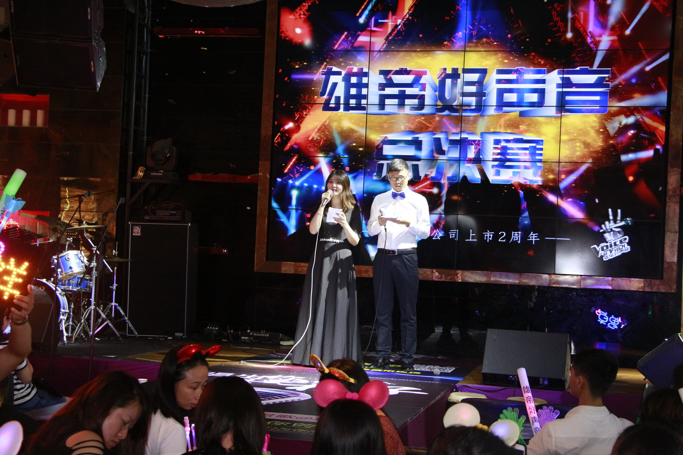 首屆雄帝好聲音總決賽在全場的歡呼聲和掌聲中拉開帷幕,公司領導與員工近200人歡聚一堂。助唱嘉賓公司副總經理戴昌齡驚艷登場,一曲《夏日傾情》點燃了全場觀眾的熱情。