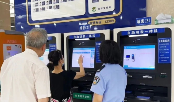在自助服務區域,群眾可在政務便民服務一體機上自主開具臨時身份證明;可在出入境記錄查詢機自助打印自己的出入境記錄;在港澳簽注自助機上實現港澳簽注立等可取;出入境自助填表機,群眾通過填寫個人信息可大大縮短受理時間。