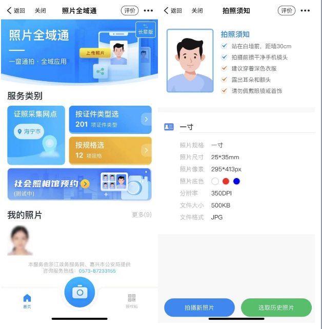除可通過服務(wù)網(wǎng)點(diǎn)自助拍照設(shè)備采集照片外,群眾還可通過自己的手機(jī)在“浙里辦”、支付寶搜索“照片全域通”,完成證件照的自拍、上傳。