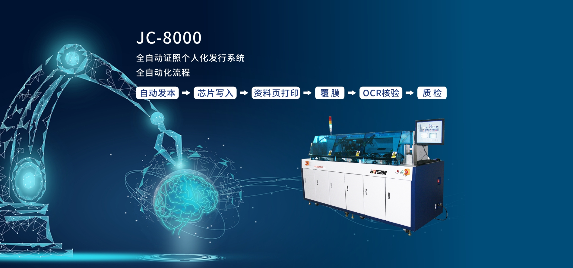 JC-8000電子護照(ePassport)一體化制證設(shè)備是目前世界上先進的護照制證一次成型制證設(shè)備。系統(tǒng)符合國際民航組織(ICAO)機讀旅行證件標準。設(shè)備集發(fā)證、翻頁、OCR拍照、電子芯片讀寫、廢證剔除、打印、覆膜、質(zhì)檢、合頁、收證、分檢功能于一體,極大地提高了工作效率和工作質(zhì)量。是電子護照(ePassport)及其它機讀旅行證件個人化制作單位不可缺少的智能化設(shè)備。